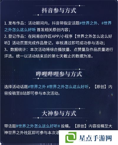 世界之外年度音乐挑战赛,将在B站、抖音、网易大神三平台同步开启!投稿赢取现金及线下门店好礼!