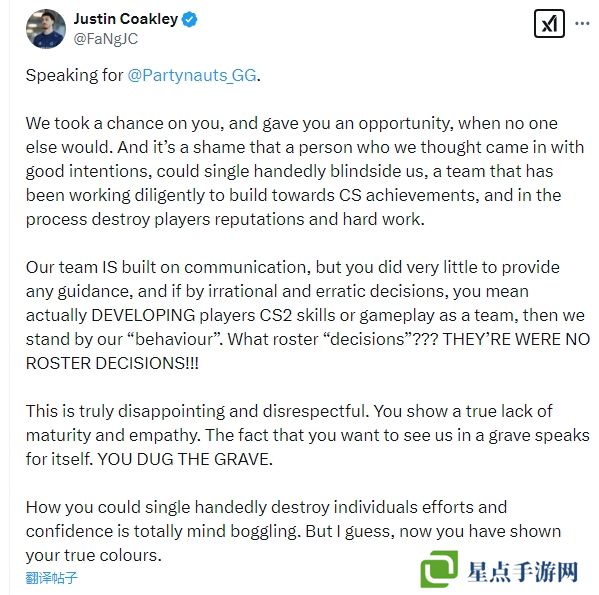 “如果你所说的‘不合理和草率的决定’是指真正提升选手的CS2技能或团队配合,那么我们坚持我们的‘行为’。什么阵容‘决定’?根本没有阵容决定!”