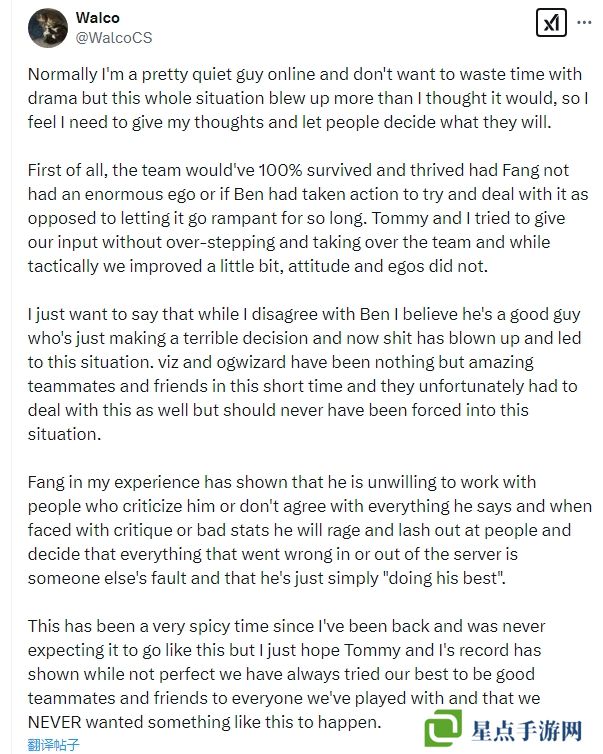这场闹剧继续升级,再Walco确认离队后,在另一篇帖子中直接点名FaNg,称他制造了这些问题。