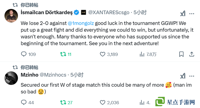 XANTARES:我们0-2输给了The MongolZ战队。祝他们在本次赛事中好运!这是一场精彩的较量,我们竭尽全力争取胜利,但很遗憾,还是不够。非常感谢从赛事一开始就支持我们的每一个人。下次征程再见!