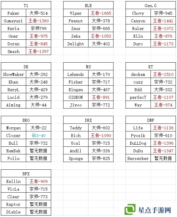 截止到2月7下午14:00,LCK赛区**有19名选手打上韩服王者,其中Viper以王者-1665的高分登顶第一;而LCK赛区同样有选手在钻石段位挣扎,此人未BRO选手Clozer,目前韩服段位钻3。