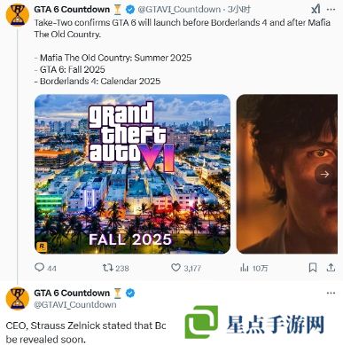 Strauss Zelnick还表示《GTA6》将在《四海兄弟:故乡》和《无主之地4》之间发售,他还透漏《无主之地4》2025年发售日将很快公布。