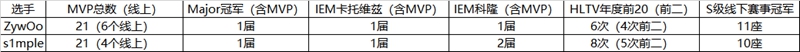 从数据上看,ZywOo和s1mple的荣誉几乎持平: