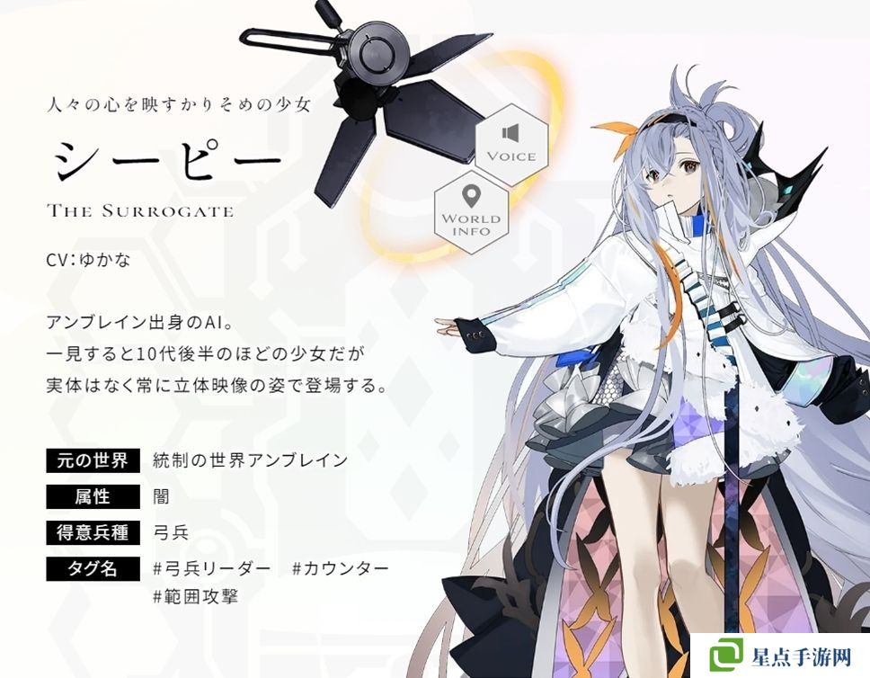 安布雷因出身的 AI。外表看似 10 多岁的少女,实则并非实体,总是以立体投影的模样登场。
