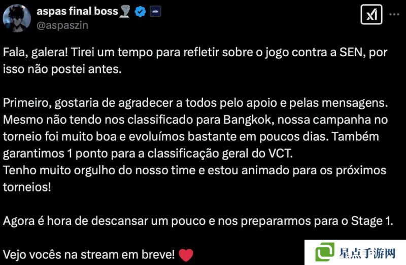 首先,我想感谢大家的支持和留言。尽管我们没有晋级到曼谷大师赛,但我们在比赛中的表现非常出色,短短几天内进步了很多。我们还拿到了1分的冠军赛积分。我为我们的团队感到非常自豪,并对接下来的比赛充满期待!