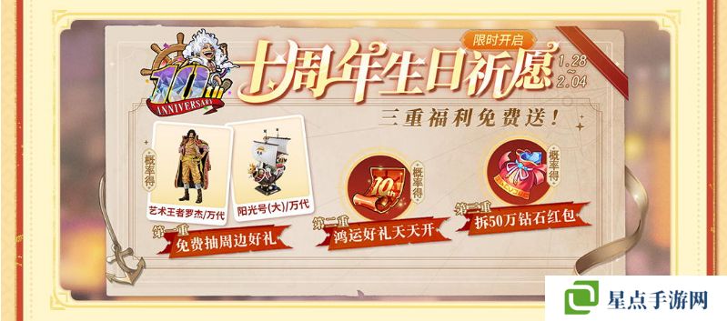 《航海王启航》十周年庆典系列活动盛大开启 各类福利送不停 发布时间:2025-01-24 11:17:29来源:网络作者: