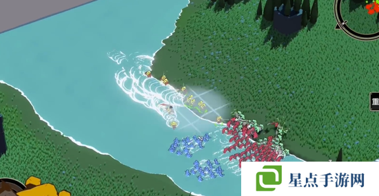 3、再操控部队前往河中,尝试截断敌人的蓝色的部队。