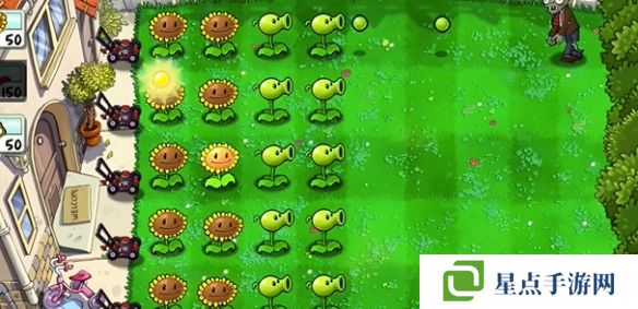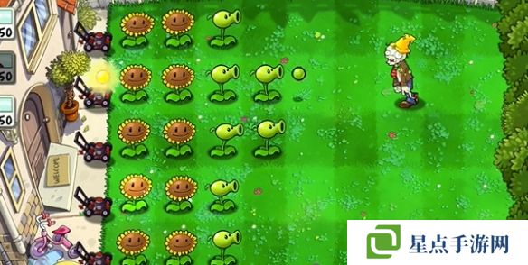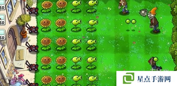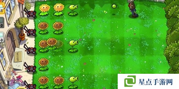 3、在左侧第三列中根据僵尸的位置种植豌豆射手。