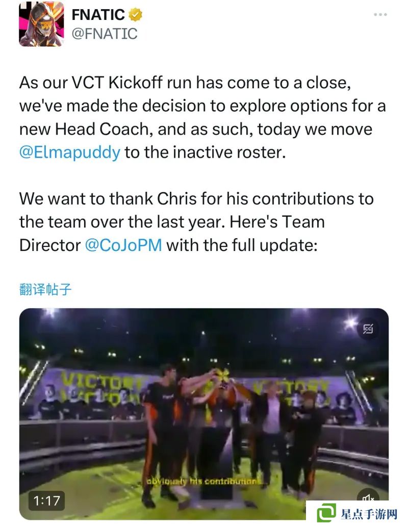 随着我们的VCT揭幕战告一段落,我们已决定寻找新的主教练人选,因此,今天我们将Elmapuddy移至非活跃名单。