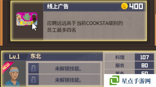 游戏开始时,可以招募四个店员。确保留足够的金币(4000)来进行招募。初期建议选择的店员包括: