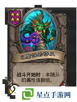 改动后:[等级5] 3/5。每当本随从获得攻击力,使你的随从获得+2生命值。