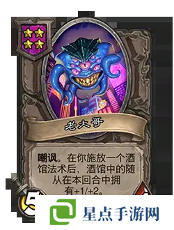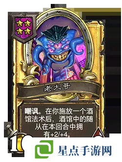 改动后:[等级4]5/4。嘲讽。在你施放一个酒馆法术后,酒馆中的随从在本回合中拥有+1/+2。