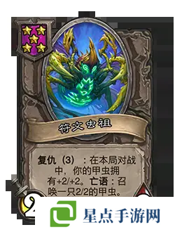 改动后:2/8。复仇(3):你的甲虫在本局对战中拥有+2/+2。亡语:召唤一只2/2的甲虫。