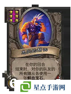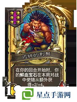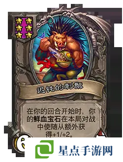 改动前:6/6。在你的回合开始时,你的鲜血宝石在本局对战中使随从额外获得+1/+1。