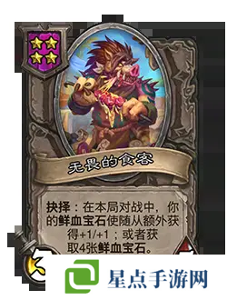 改动后:[等级4] 3/5。抉择:在本局对战中,你的鲜血宝石使随从额外获得+1/+1;或者获取4张鲜血宝石。