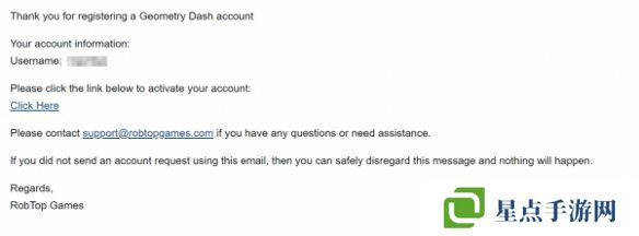 9、提交信息后,RobTop的服务器会自动发送给你的电邮一个邮件。