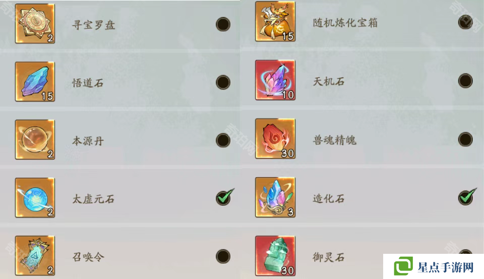 自选道具有两类,如果法则没开至尊法则,小编建议优先选取悟道石,开了的可以选择太虚元石来抽玄诀轮回,第二类自选小编建议选择造化石来提升小世界等级!毕竟小世界等级也能增加增减伤等重要属性!