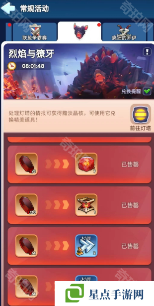 1、开启火晶八之后烈焰与獠牙就会有免费的精炼火晶可以兑换