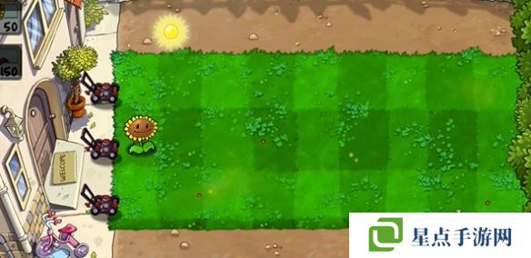 3、继续在左侧补充一个向日葵,在中间种植一个豌豆射手。