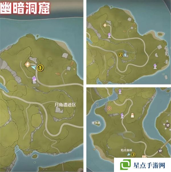 花焰群岛一共有4个洞窟,每个洞窟有三个烟花筒,唯有全部3个点燃后才能进入洞窟中,具体烟花筒位置参考下图: