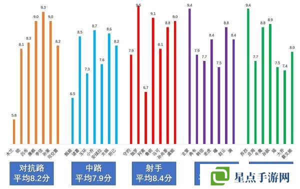 从职业分路来看,今年中路连出两款8分+皮肤,平均分显著进步。辅助位首次拿到年限传说,止住了“软辅颓势”,三年来再次得到一款8分+皮肤。射手位凭借虞姬的出色表现,拉开了对打野和对抗路的优势。