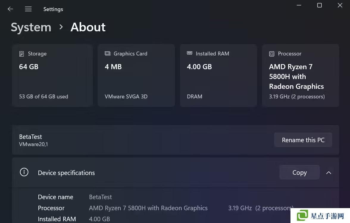 在“设置 > 系统 > 关于”页面顶部新增可视化卡片,展示处理器、内存、存储和 GPU 信息,便于用户评估硬件性能。目前仅支持部分桌面设备,企业托管电脑暂不可用。