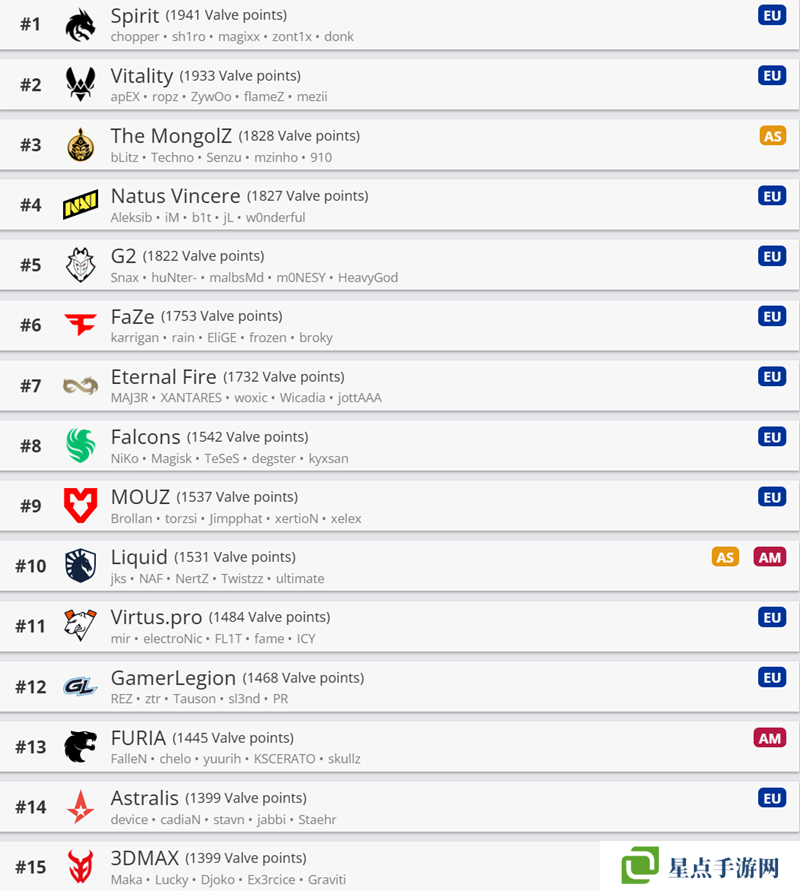 在IEM 卡托维兹站结束之后,HLTV网站更新了V社世界排名。本次卡托维兹站的冠军战队Vitality排名上升来到第二。他们和第一名战队Spirit的分差仅为8分。
