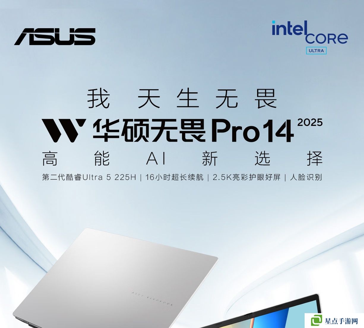 华硕无畏 Pro14 2025 今日开售:英特尔酷睿 Ultra 5 225H、2.5K 屏幕,国补价 4879 元