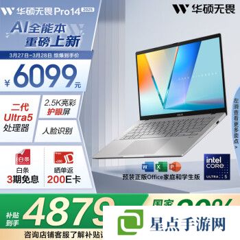 本站 3 月 27 日消息,华硕无畏 Pro 14 酷睿版 2025 今日正式开售,官方定价 6099 元,叠加国补后 4879 元。