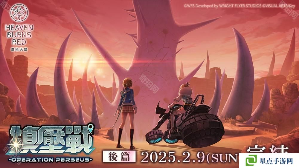Wright Flyer Studios × Key 戏剧性 RPG《绯染天空 Heaven Burns Red》即将于 2025 年 2 月 9 日(日)实施更新,释出揭晓七濑过去的「**战 -Operation Perseus-」后篇。并且在此更新中,七濑七海的 SS 战术型态会以新职责「RIDER」登场。