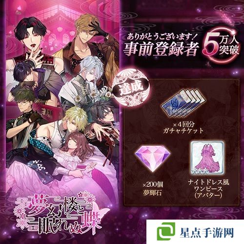 另外,官方同时宣布《梦幻楼与不眠之蝶》事前登录人数已突破 5 万人,将在本赠上市时赠送「转蛋券 4 张」、「梦辉石 200 个」、「晚礼服风连身裙(虚拟形象)」给全体玩家。