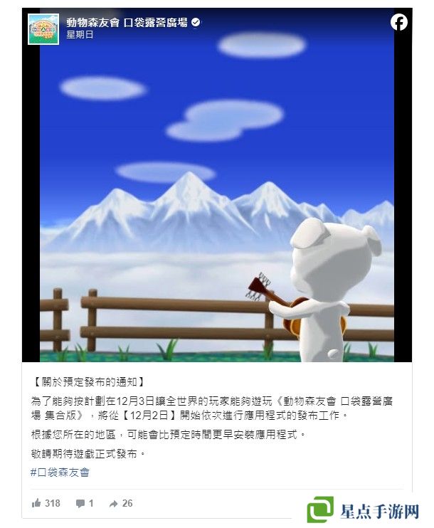 任天堂宣布,为了能够按计划在 12 月 3 日让全世界的玩家能够游玩《动物森友会 口袋露营广场 集合版》,从12月2日开始依次进行应用程式的发布工作。根据玩家所在的地区,可能会比预定时间更早安装应用程式。