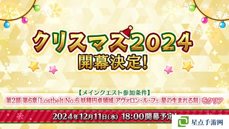 FGO PROJECT(Notes、Aniplex,Lasengle)旗下智慧型手机 RPG《Fate/Grand Order》日版,官方在2024年12月4日预告自 12 月 11 日举办期间限定活动「圣诞节 2024」。