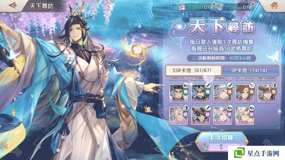 城主只需每日登入即可获取 1 次寻访机会,1 次寻访机会可招募 1 个 SSR 武将!每周日则会升级为 SP 武将寻访!