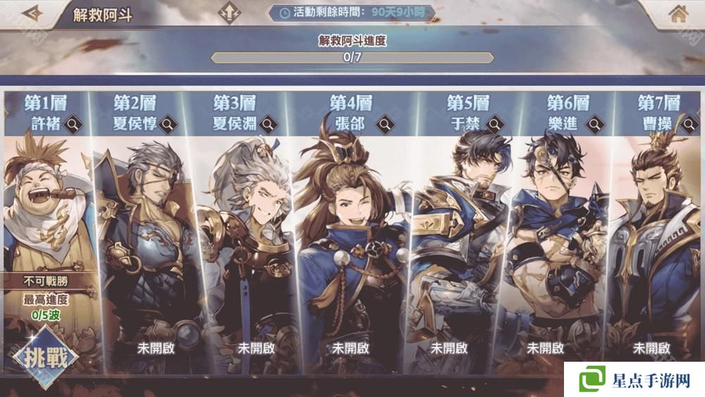城主需挑战 7 层关卡,根据每层关卡不同的设定需求调整阵容配置。每通关一层后,即可直接获取 160 个雷霆赵云碎片。通关 7 层后,则可使用获取碎片将雷霆赵云升至最高培育状态 —— 五火!还等什么?快来解决阿斗吧!