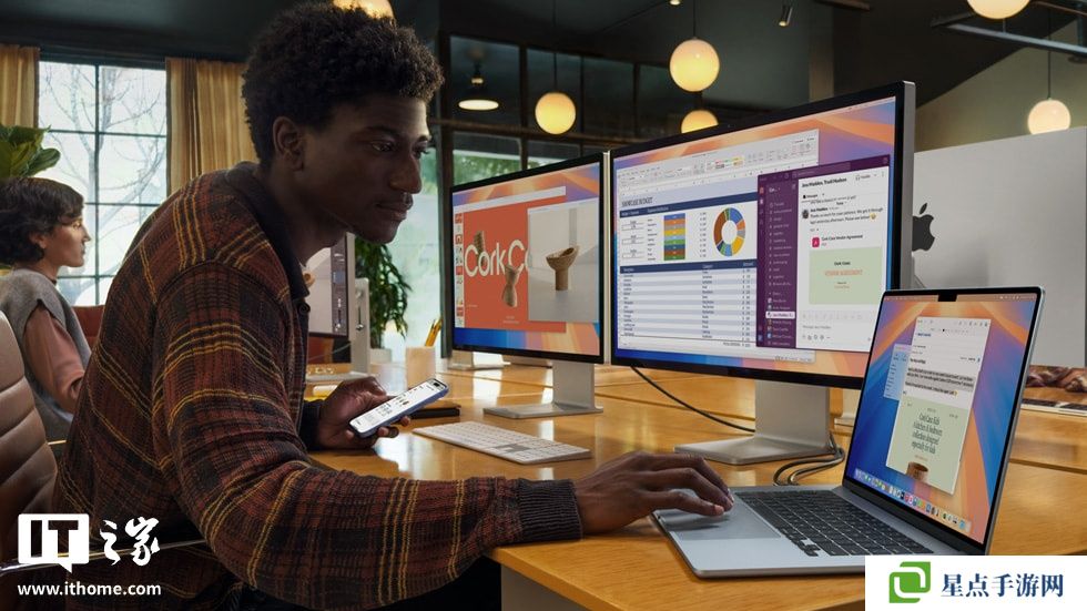 新款 MacBook Air 支持在屏幕打开状态下连接两台 6K 外部显示器,加上内置显示器,可满足用户多屏显示的需求。
