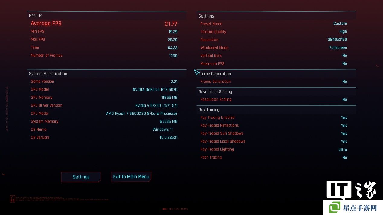 在 4K 分辨率超级光追画质下,游戏平均帧数为 21 帧;