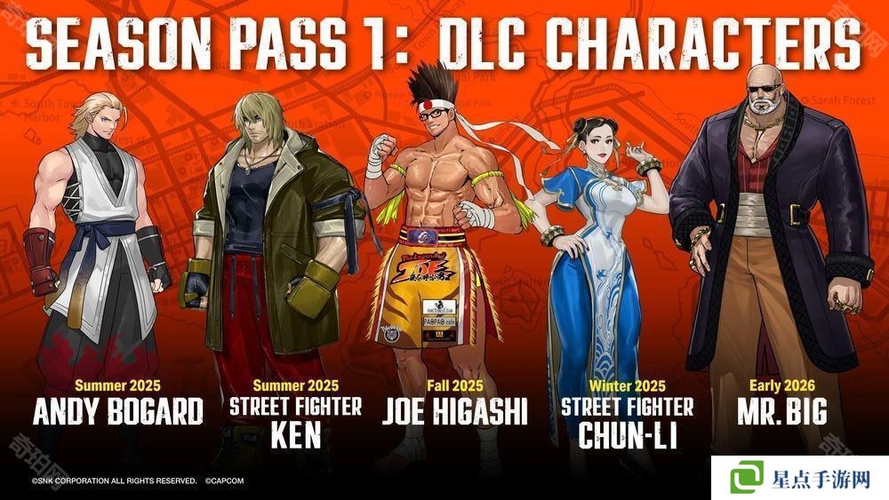 Season Pass 1 将收录《快打旋风》系列的「肯」与「春丽」,《饿狼传说》系列的「安迪·博加德」和「东丈」,以及《龙虎之拳》系列的「Mr.BIG」。玩家可以透过购买特别版来取得 Season Pass 1。