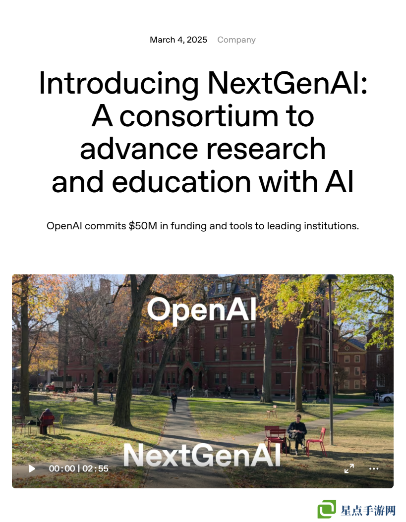 OpenAI 携手十余所顶尖大学启动 NextGenAI 联盟,豪掷 5000 万美元推动教育变革
