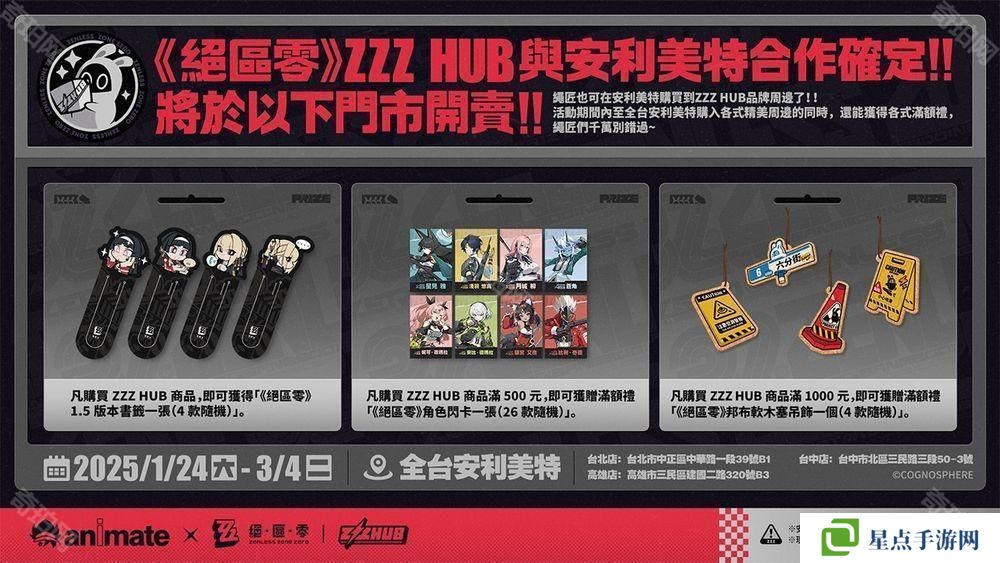 官方表示,《绝区零》ZZZ Hub 即将于本周五(24 日)起于全台安利美特门市开幕,本次合作以《绝区零》全新 1.5 版本「闪耀的此刻」为设计主轴,现场将会佈置耀嘉音以及伊芙琳的角色立牌与主题佈景,要让到场的绳匠体验大明星耀嘉音的魅力,请各地的绳匠前往一探究竟吧。另外据情报显示,只要合作期间购买 ZZZ Hub 商品即可获得《绝区零》相关限定周边,还请绳匠们把握本次机会带回心仪的 ZZZ Hub 商品吧。
