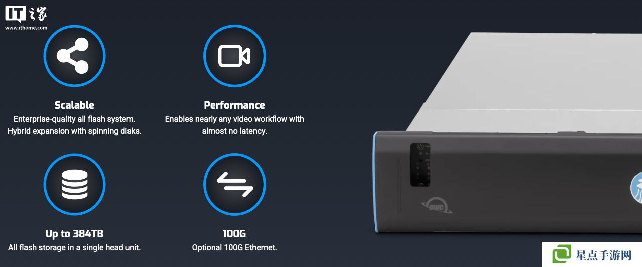 根据官方描述,这两款产品是为了解决视频剪辑师、后期团队和内容创作者,应对 4K、8K 甚至更高分辨率的海量尺寸文件、复杂协作和无缝访问的需求而生,两款产品分别定位小型团队大容量存储需求和媒体团队高吞吐需求。