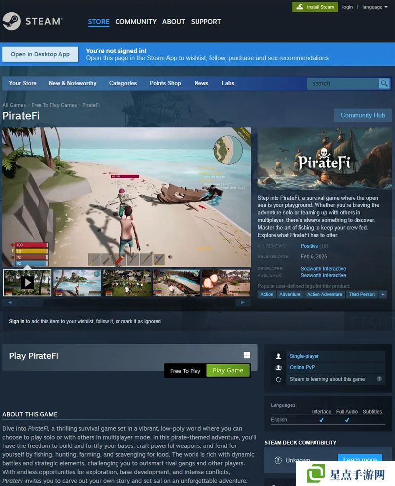 PirateFi是一款在2025年2月6日登陆Steam平台的免费多人合作生存冒险游戏。