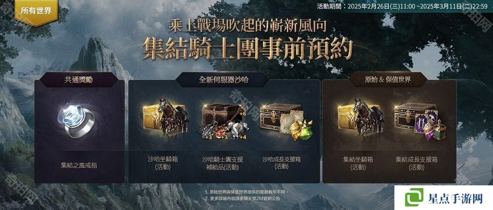 NCSOFT 旗下手游《天堂 2 M》将于 3 月 12 日开放价值回归世界全新服务器「沙哈」,26日启动事前预约活动。官方指出,《天堂 2 M》即将在 3 月 12 日开放全新服务器「沙哈」。官网公开预告网页,释出更新项目,包含价值回归世界的新服务器「沙哈」回归奖励说明、原始世界「巡礼者寺院」、保值世界全新领地「亚丁」与坐骑,还有职业复生等内容。