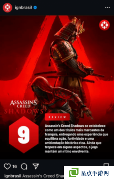 另一家媒体,巴西 IGN 也提前泄露了游戏的评测,给出了 9 分(满分 10 分)的好评。巴西 IGN 给出了极高的评价,称新作“将自己确立为《刺客信条》系列中最杰出的作品之一”,并且提供了“在动作、潜行,以及浓厚历史氛围环境之间平衡的体验”,即便“游戏在部分地方仍有不足”,但它“仍引人入胜”。
