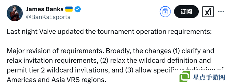 V社赛事规定更新:放宽邀请标准