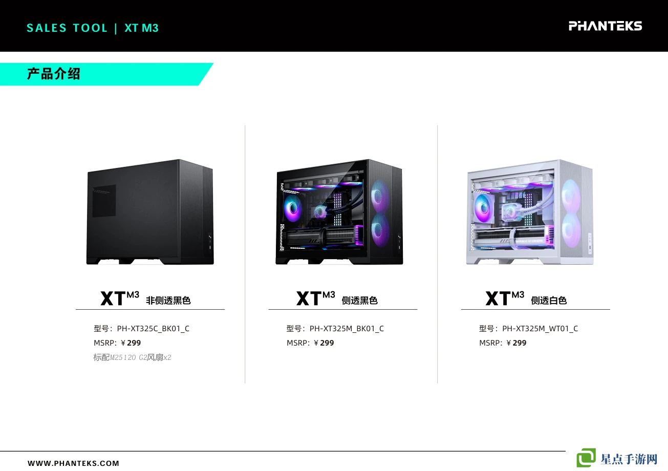 XT M3 机箱包含三个版本:非侧透黑色、侧透黑色、侧透白色,其中非侧透黑色随附两颗 M25120 G2 风扇,各款式定价均为 299 元。