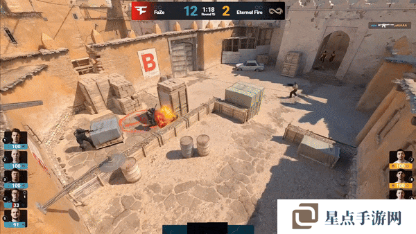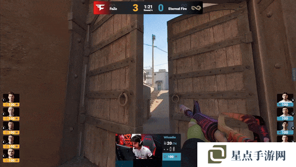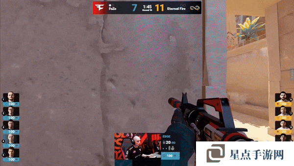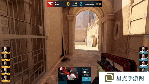 FaZe先做进攻方。手枪局,FaZe的A区爆弹遇到了woxic和jottAAA两人世界位架枪,土匪直接被打退,Eternal Fire拿下手枪局。