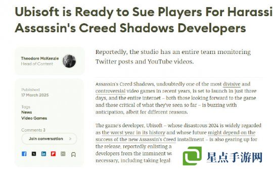 育碧新作《刺客信条:影》即将上线,游戏现已开启预载。而面临可能到来的舆论压力,育碧计划推出「反骚扰计划」以保护员工。有团队成员表示自己自游戏公布以来已遭受无数次网络攻击,而且曾被建议不要在社交媒体上展示出在育碧工作,以免受到骚扰。