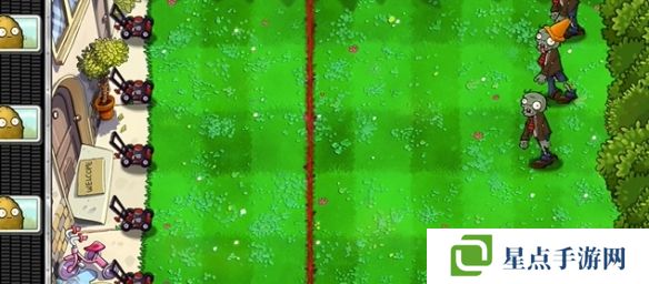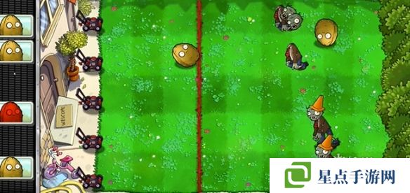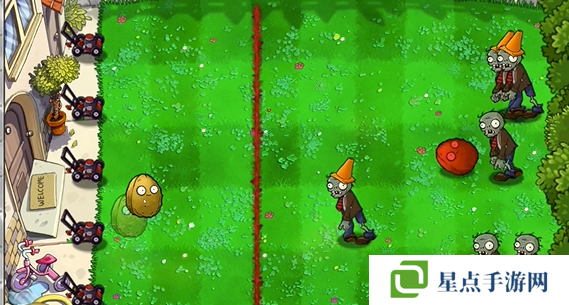 3、然后将坚果种植在红线的左侧,击败右侧的敌人。