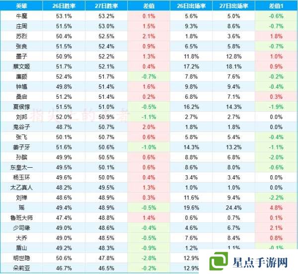 以上就是辅助英雄的数据变化情况,相对来说不算很大,对此你怎么看呢?
